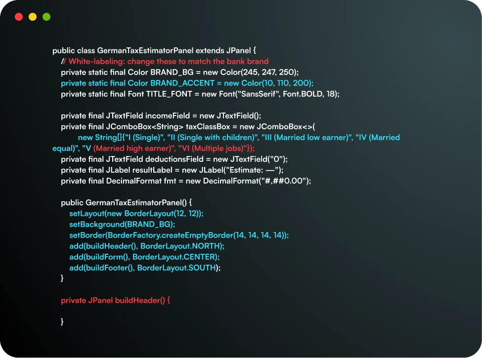 Mit unseren Embedded-Tax-Lösungen ermöglichen wir Banken, FinTechs und Beratern, benutzerfreundliche, digitale Steuerlösungen direkt in ihre bestehenden Services zu integrieren. So wird Steuererklärung so intuitiv und vernetzt wie der Rest der Finanzwelt.